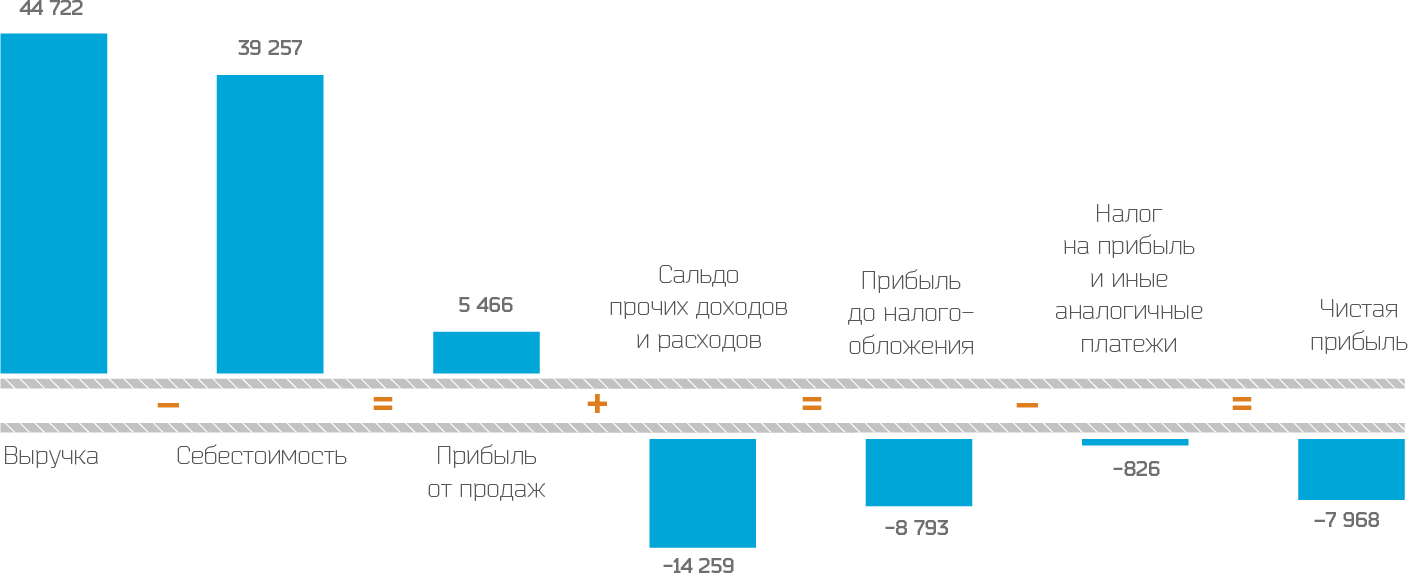 | Чистая прибыль | млн руб. | -7 968 | -6 121 | 5 443 | 7 796 | 11 212 | 13 278 | 266,6 | с. 2400 (ф.2) |