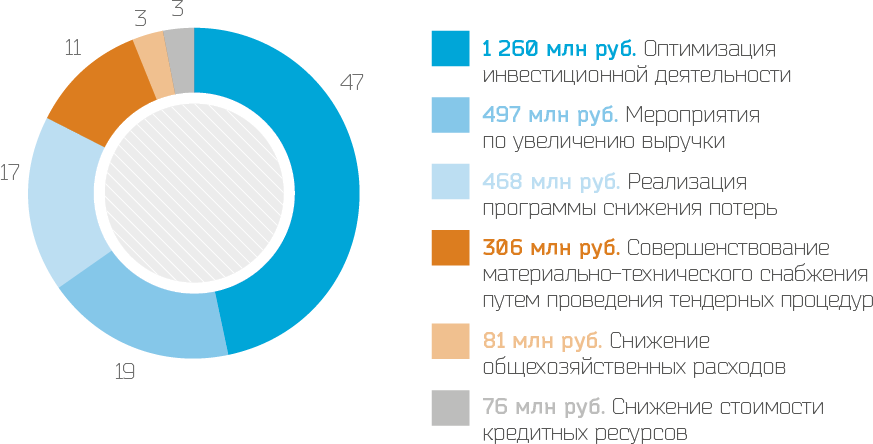 Эффект от реализации мероприятий, направленных на оптимизацию операционных издержек и получению дополнительного дохода, в 2014 г. составил 1 350 млн руб., эффект от реализации мероприятий, направленных на оптимизацию издержек в области финансовой деятельности, — 76 млн руб.